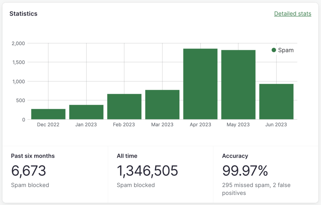 The plugin has been given a fresh coat of paint, and you will notice a nicer appearance when configuring Akismet or viewing your stats.